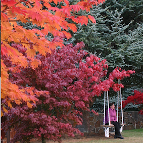 Autumn brings the brilliant kaleidoscope of the maples’s turning red, yellow and orange .