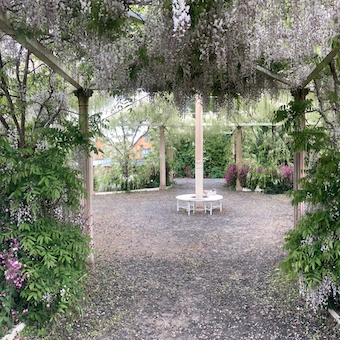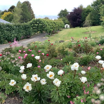 From daffodils and frittilaria in the spring to mass peonies, Wisteria Pavilion and the abundance of the vegetable garden in summer.